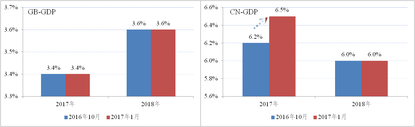 2016年全球經濟可謂不溫不火。一方面主要國家經濟繼續復蘇;另一方面全球經濟增長乏力,多數國家經濟增速仍低于潛在增長率。1月份,國際貨幣基金組織(IMF)發布最新《世界經濟展望》報告中,預計中國2017年經濟增速為6.5%,較上期上調0.3個百分點;維持世界經濟3.4%不變。