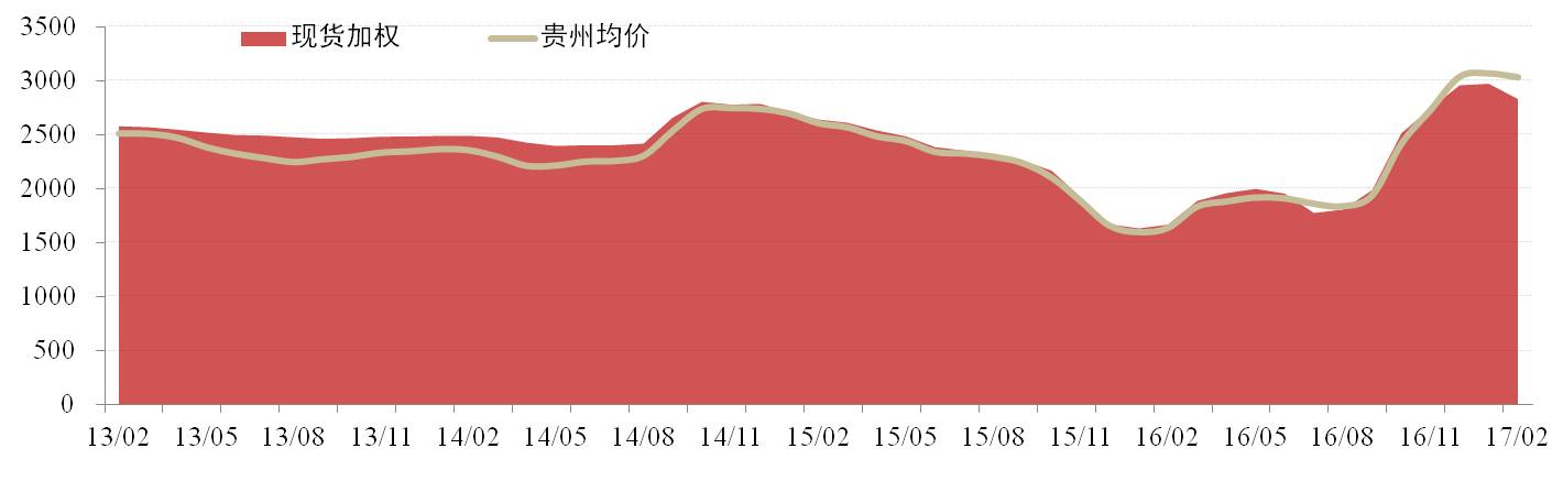 全國現貨價格方面,2月份成為氧化鋁價格走勢的分水嶺,氧化鋁市場價格出現小幅下降但主要氧化鋁企業控制力仍在,價格相對可控。全國氧化鋁現貨加權價為2,928元/噸,環比下降1.38%。貴州氧化鋁現貨加權價為3,030元/噸,環比下降1.17%。貴州地區現貨加權價格相對高于全國其他地區。