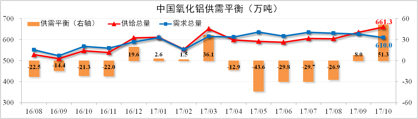 分析認為: 電解鋁違規(guī)產(chǎn)能已經(jīng)基本減產(chǎn)完畢,而氧化鋁市場受高利潤刺激仍保持高產(chǎn)、穩(wěn)產(chǎn)以及超產(chǎn),導致氧化鋁供需出現(xiàn)過剩。預計11月份采暖限產(chǎn)對氧化鋁和電解鋁產(chǎn)能影響程度相當,氧化鋁供應過剩局面將維持不變。