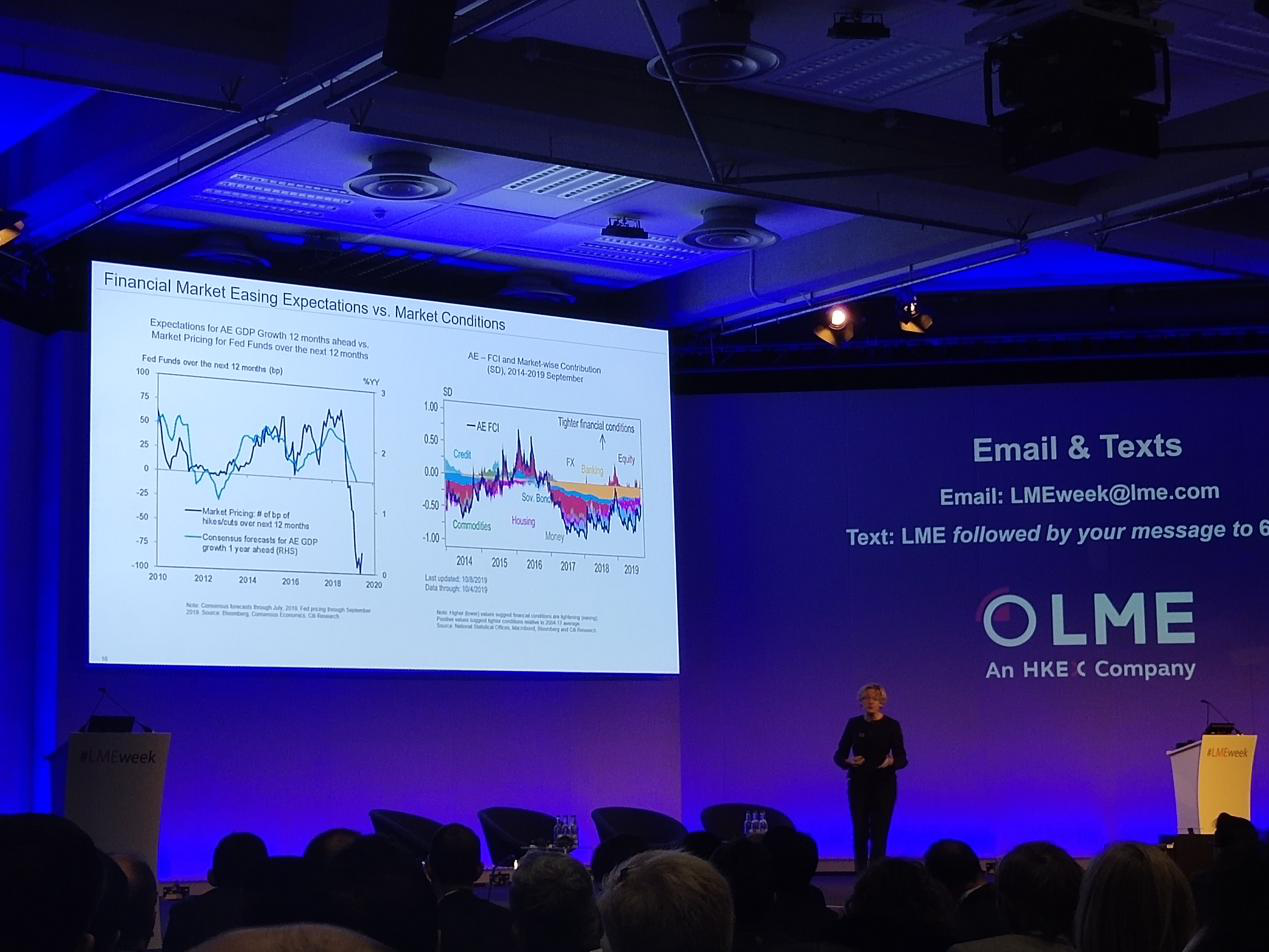 發稿時間:2019-10-312019年10月28日,一年一度的LME WEEK在英國倫敦正式召開。上海金屬網對本次LME WEEK進行全程報道,本文將為您帶來LME金屬研討會上的花旗銀行全球首席經濟學家Catherine Mann關于“全球經濟展望”的演講: