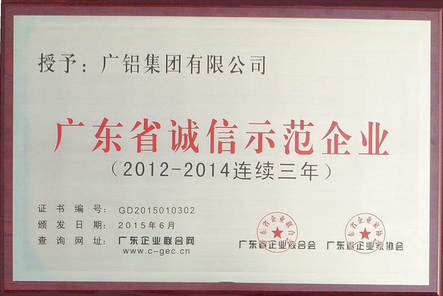 廣鋁集團連續(xù)三年獲“廣東省誠信示范企業(yè)”殊榮