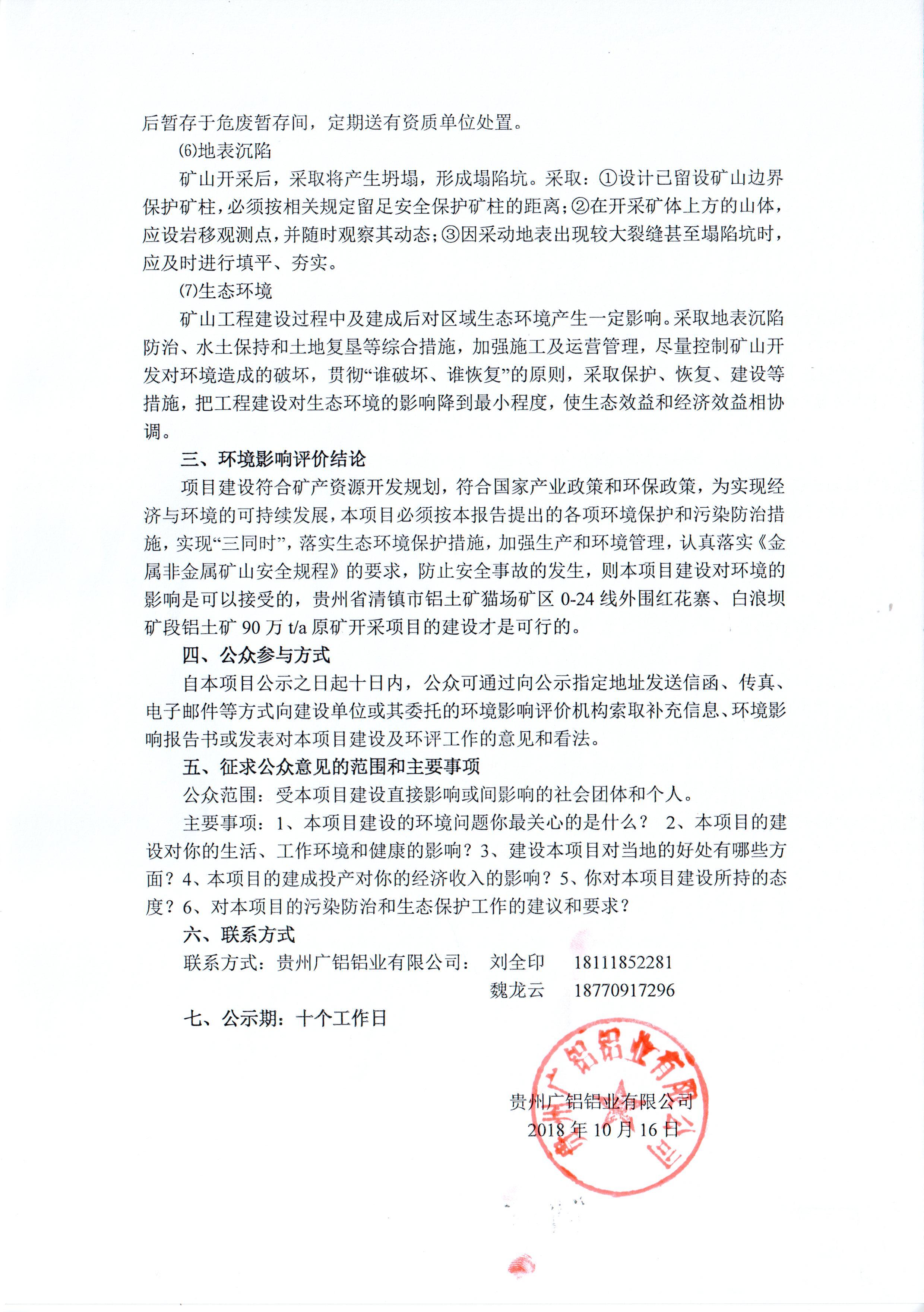 新聞中心 集團動態(tài) 行業(yè)資訊 廣鋁期刊 下載 廣鋁手機APP 廣鋁 for Android 手機助手掃一掃 廣鋁 for iPhone 手機助手掃一掃 ———————————— 廣鋁集團微信公眾號 添加方式: 微信號請搜索:GaluminiumGroup 中文昵稱請搜索:廣鋁集團 或直接用手機微信 掃描左側二維碼 ———————————— m.jzxydc.com 貴州省清鎮(zhèn)市鋁土礦貓場礦區(qū)鋁土礦項目環(huán)境影響評價第二次公示 發(fā)稿時間:2018-10-18