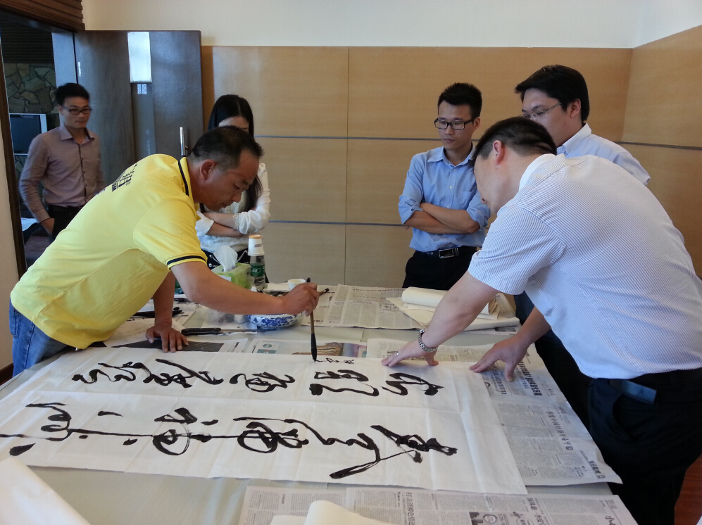 28日下午2時(shí),書法比賽正式開始,首先開始的是鋼筆書法,各個(gè)參賽同仁都使出自己的看家本領(lǐng),勾勒各自的創(chuàng)作,不到半小時(shí)一篇篇鋼筆字作品就此問(wèn)世。鋼筆字作品里面不乏佳作,書寫手法有正楷的、隸書的、小篆等。接著,萬(wàn)眾期待的毛筆書法開始了,參賽者們摩拳擦掌已久,對(duì)創(chuàng)作內(nèi)容早已胸有成竹,只見廣鋁幕墻有限公司郭鴻杰正筆走龍蛇揮毫出狂草大作,主題立意和筆尖功夫皆為上乘。在其完成大作后,向大家介紹到他所用的毛筆已有13年的歷史了。書生指尖的筆,猶如劍客手中劍,十年磨一劍,高超的技藝需要漫長(zhǎng)的時(shí)間積累,終獲大成。正如廣鋁集團(tuán)企業(yè)自身一樣,專注二十一年,全力打造“百年廣鋁”品牌。貴州廣鋁也在當(dāng)天同步進(jìn)行書法比賽活動(dòng),藏龍臥虎的貴州廣鋁也是佳作涌現(xiàn),令人津津樂(lè)道。