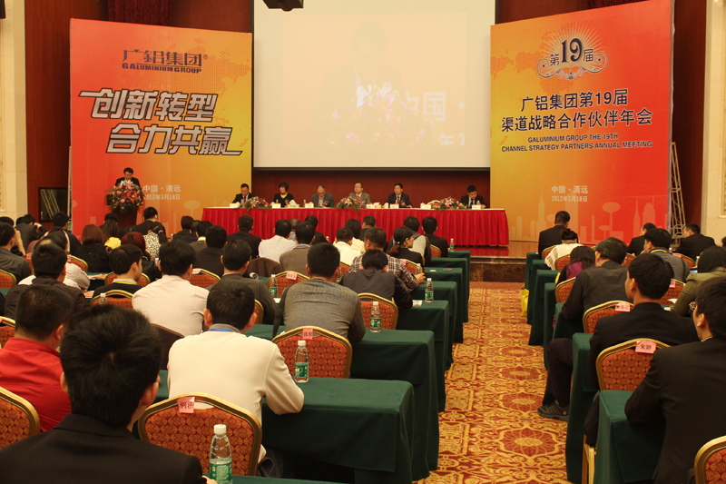 2012年3月18日,廣鋁集團(tuán)于廣東清遠(yuǎn)恒大隆重舉辦了“廣鋁集團(tuán)第十九屆渠道戰(zhàn)略合作伙伴年會”,此次年會以“創(chuàng)新轉(zhuǎn)型,合力共贏”為核心,攜手核心伙伴共同探討與分享企業(yè)轉(zhuǎn)型升級之路及經(jīng)營與管理之道。